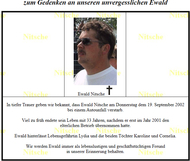 Nun wird die Firma Nitsche von Lydia Dabernig geführt, welche mit dem Mitarbeiter Andreas Lindenhofer die Geschäfte am Laufen hält.